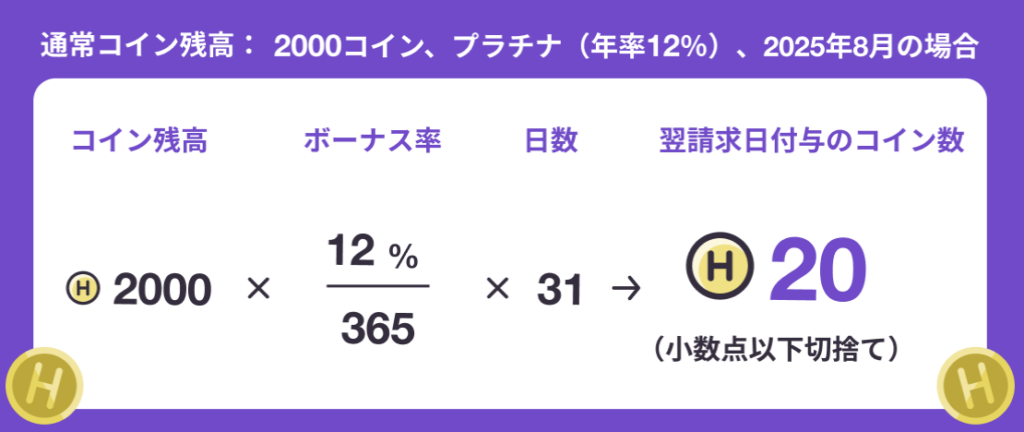 コイン残高に応じてボーナスコインが毎月自動でもらえるよ!