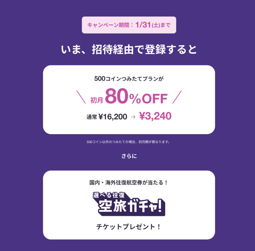 はむたま夫婦の招待から1月31日までに登録しないと80%offにならないよ!