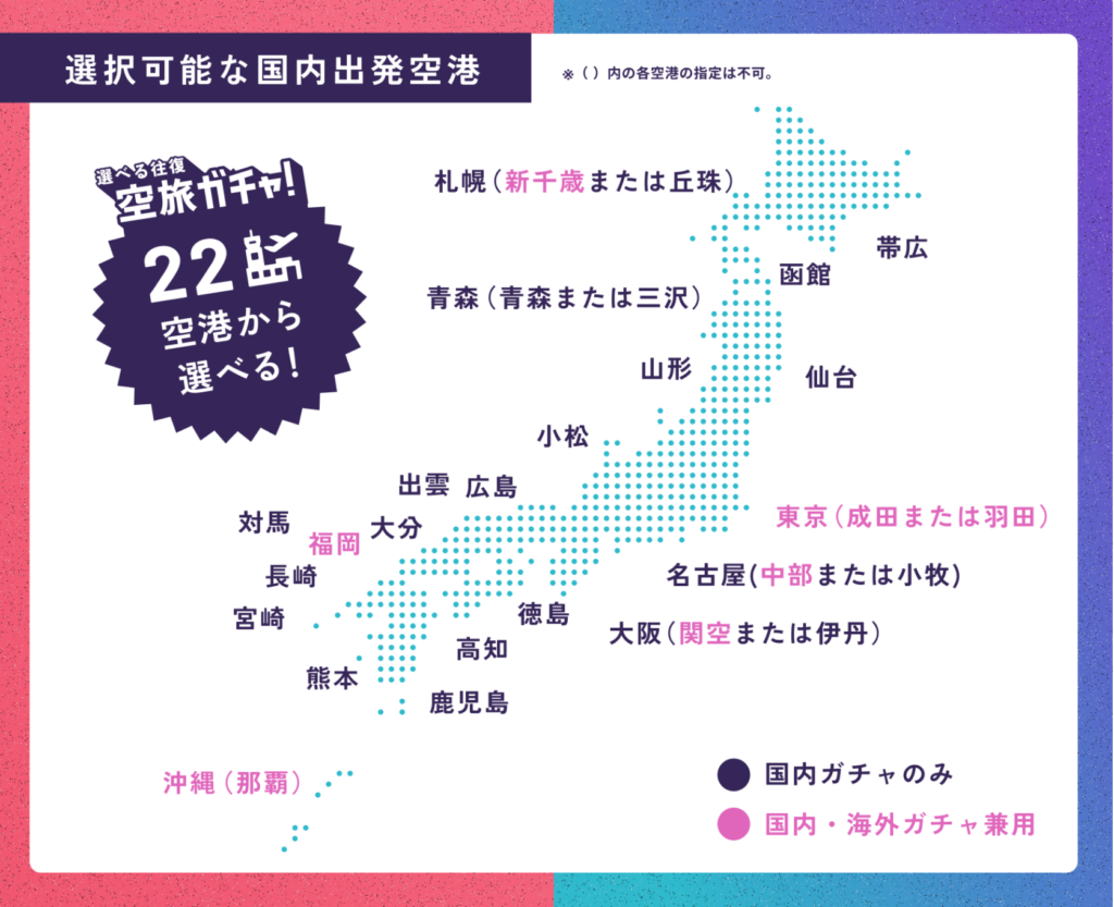 国内?海外?あなたはどっち!?選べる往復空旅ガチャも同時開催!