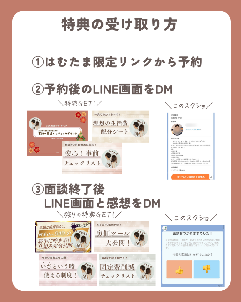 ※この特典は予約したLINE画面をインスタにDMするともらえます。