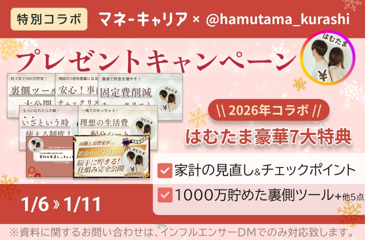 2026年1月11日までに「はむたま夫婦限定リンク」から予約して、2026年1月中に面談完了した方を対象にプレゼントするよ〜!