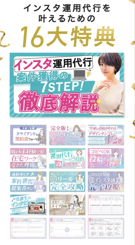 無料体験レッスンを受けた人は、体験レッスン最後のアンケートに回答すると16大特典がもらえるよ💓
